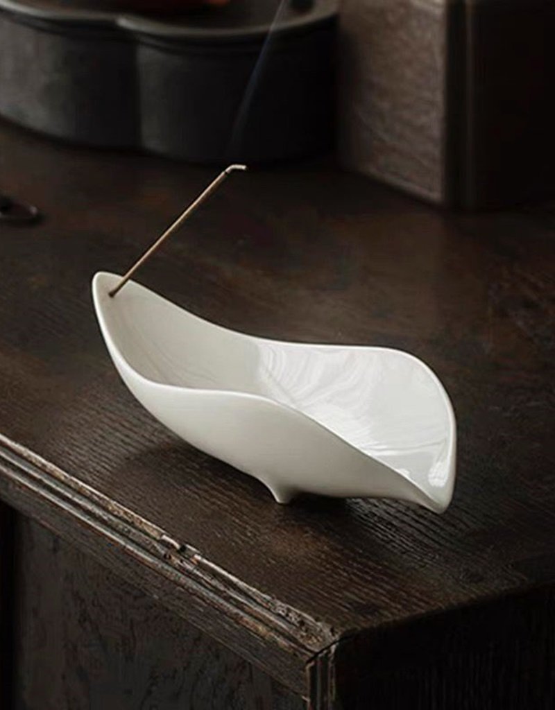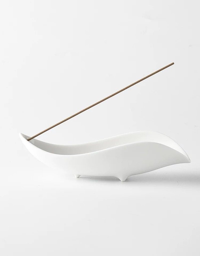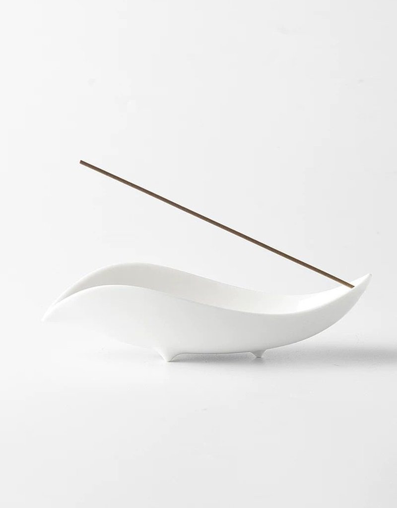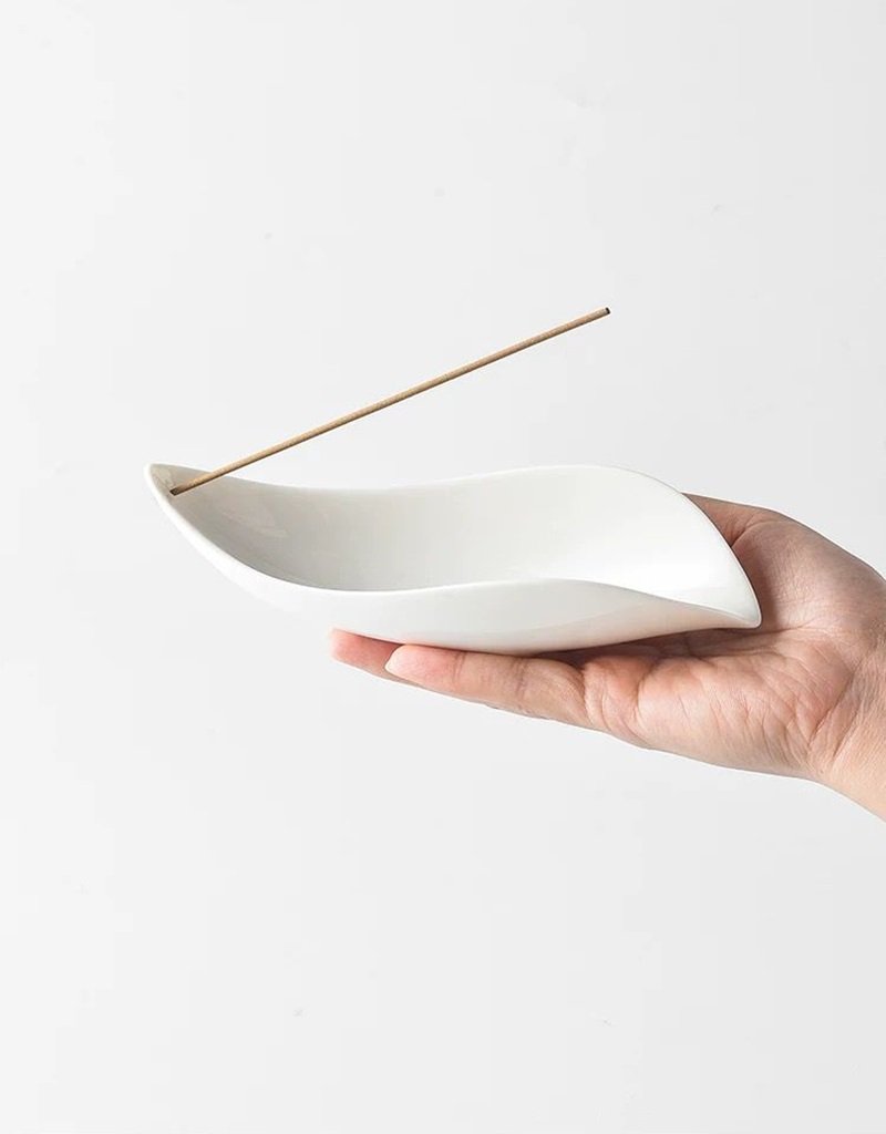 Este porta inciensos de porcelana blanca destaca por su diseño elegante en forma de barca, que evoca serenidad y equilibrio. Su superficie suave y brillante refleja la pureza del material, mientras su forma alargada permite recoger la ceniza del incienso con limpieza y armonía. Ideal para varillas de incienso, es una pieza que combina funcionalidad y estética minimalista.